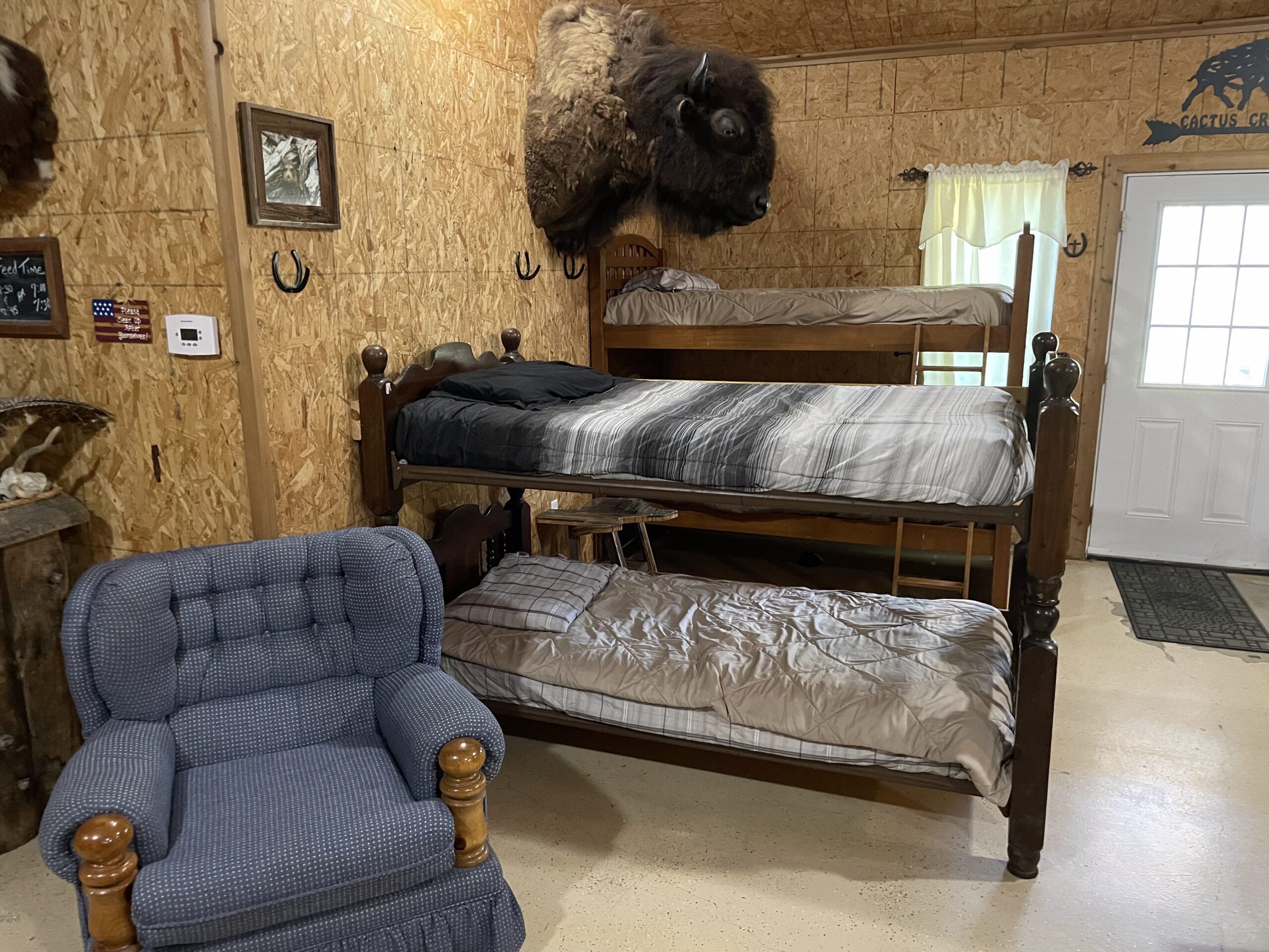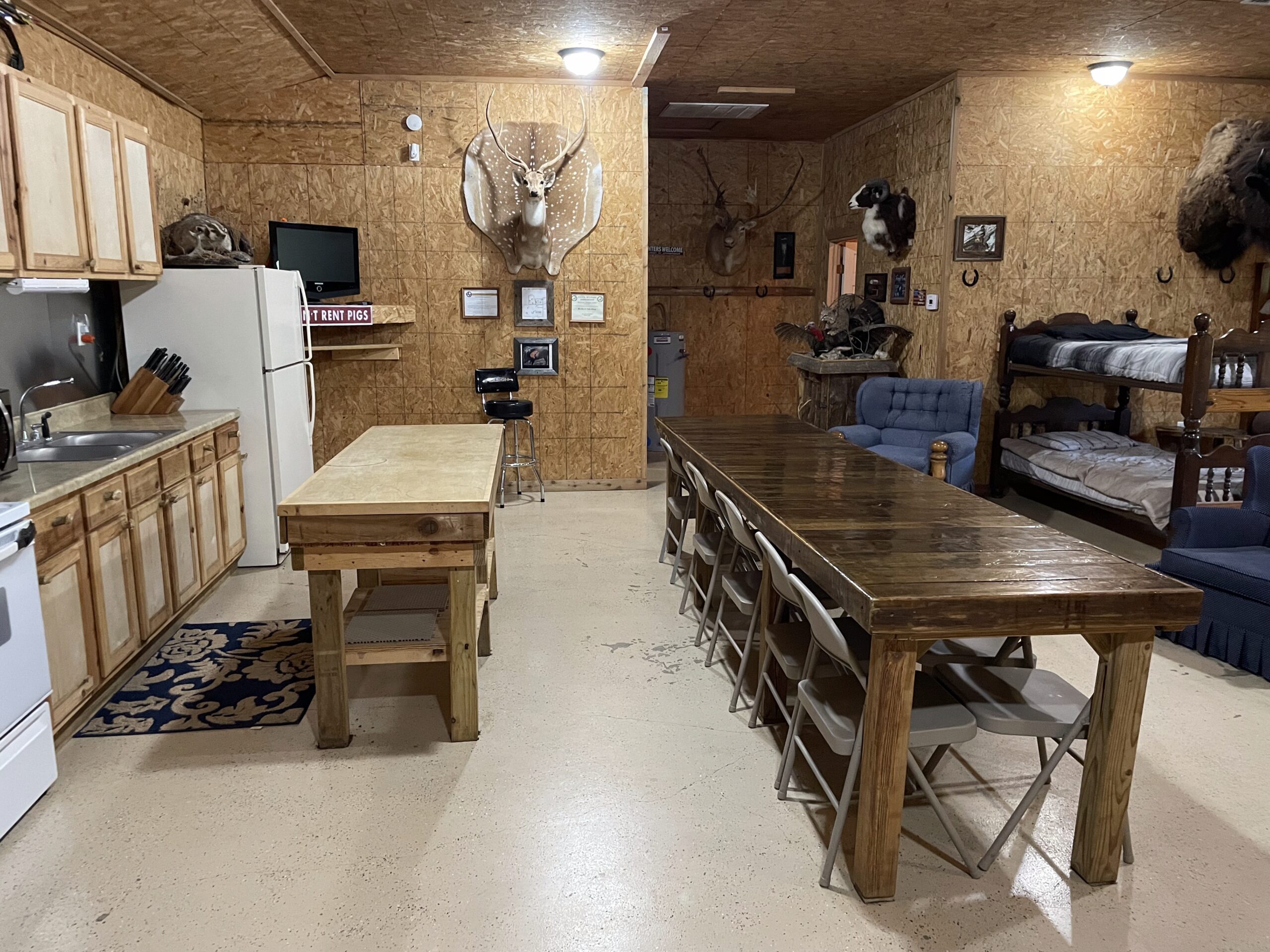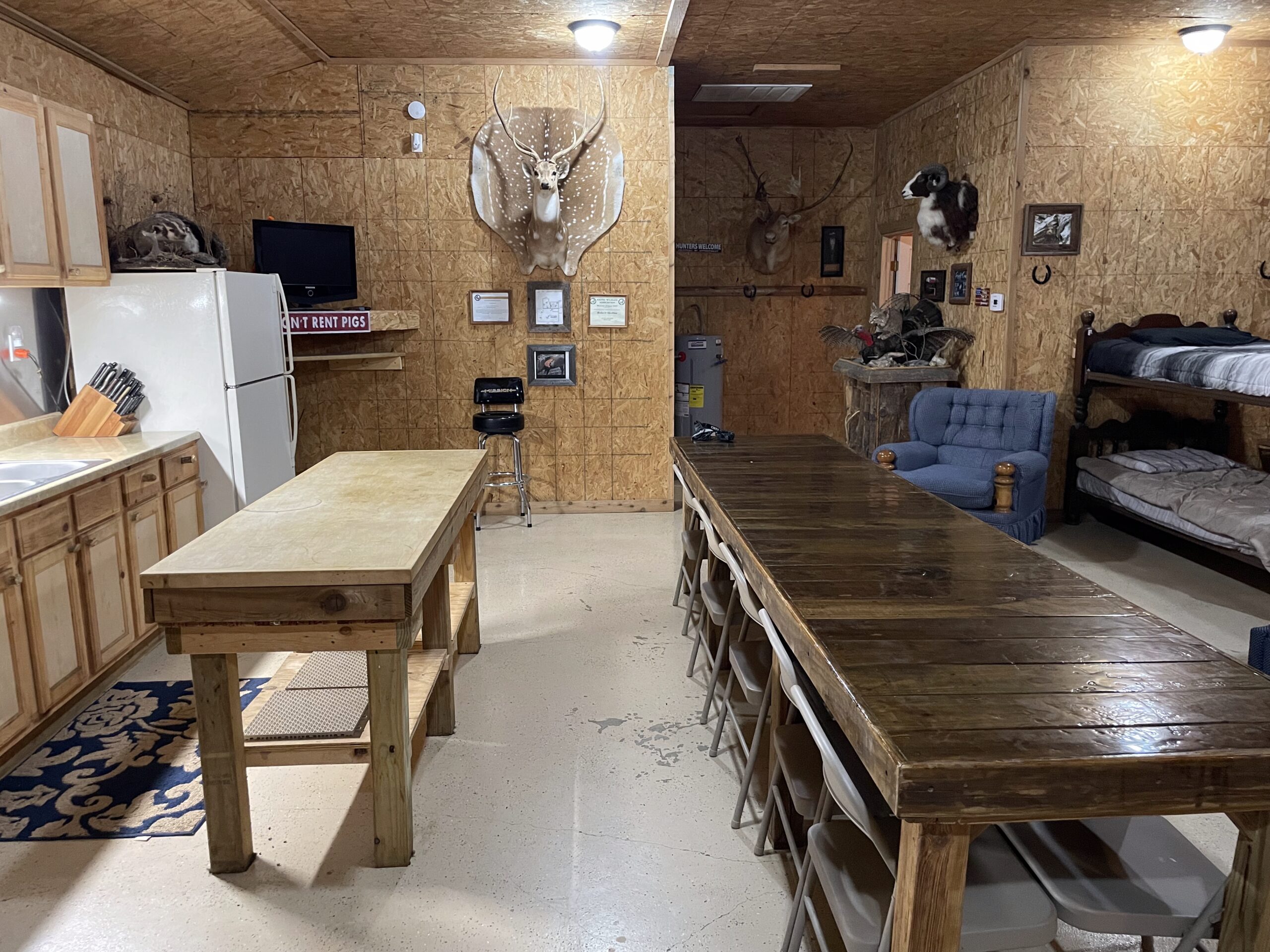 - Full Kitchen with supplies - stove, oven, microwave, refrigerator, chest freezer, coffee pot, pots, pans, utensils.